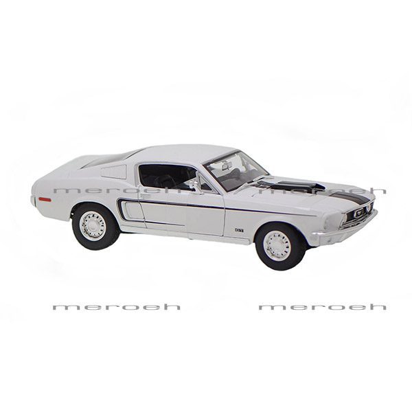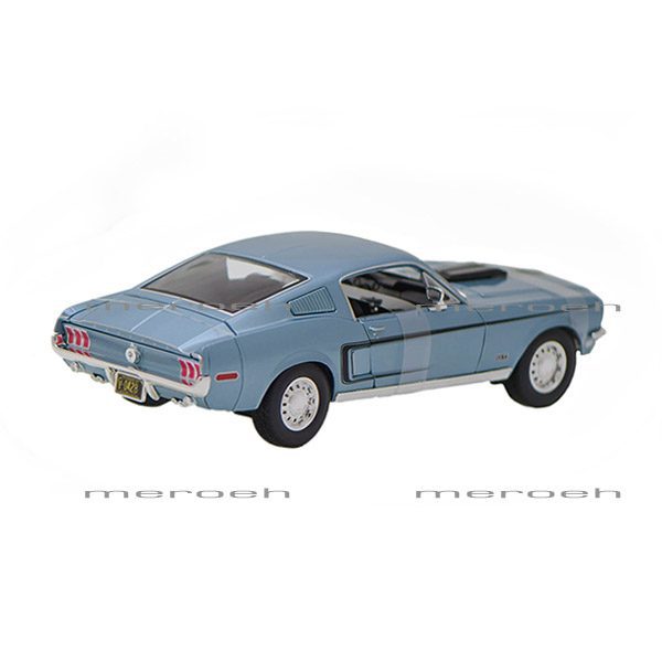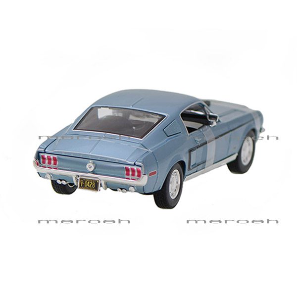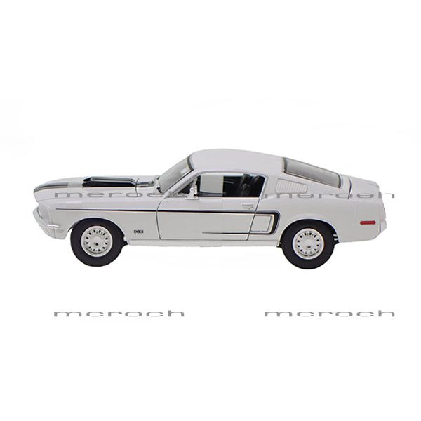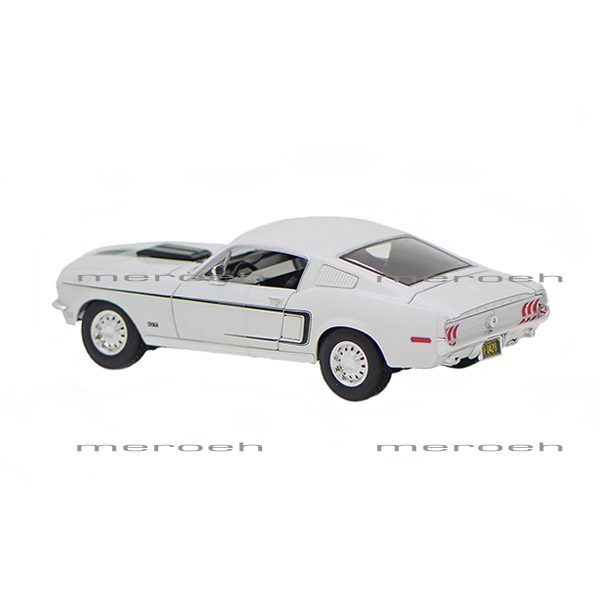 ماکت ماشین فورد موستانگ مدل ۱۹۶۸ Ford Mustang GT Cobra Jet دارای دو درب ماشین بازشو به همراه درب کاپوت و صندوق عقب بازشو می باشد.