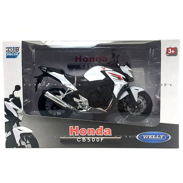 ماکت موتور سیکلت فلزی هوندا مدل Honda CB500F توسط شرکت ویلی در مقیاس ۱:۱۰ به زیبایی مدل گردیده و در اختیار دوستداران موتورهای فلزی قرار داده شده است و دارای جک بوده و کمک فنر عقب آن متحرک می باشد. باک این موتور زیبای هوندا نیز فلزی است.